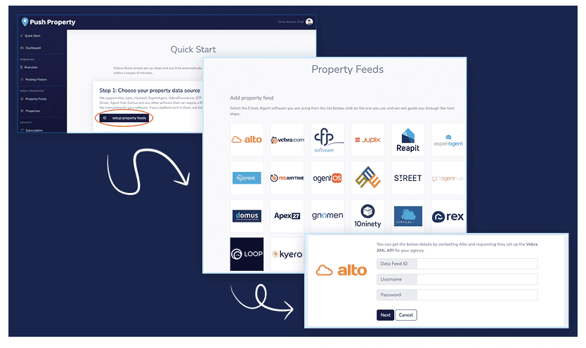 To get your property data we’ll need to connect to your property management CRM. Login to your push.property control panel, click on Property Feeds and select the CRM that you use. Enter your data feed credentials in the form. If you don’t have these you may need to contact your CRM provider (some may require you to apply or pay for this service).