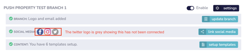 Return to Branches and click on “link social media” for each branch in turn and follow the prompts for your chosen channels.