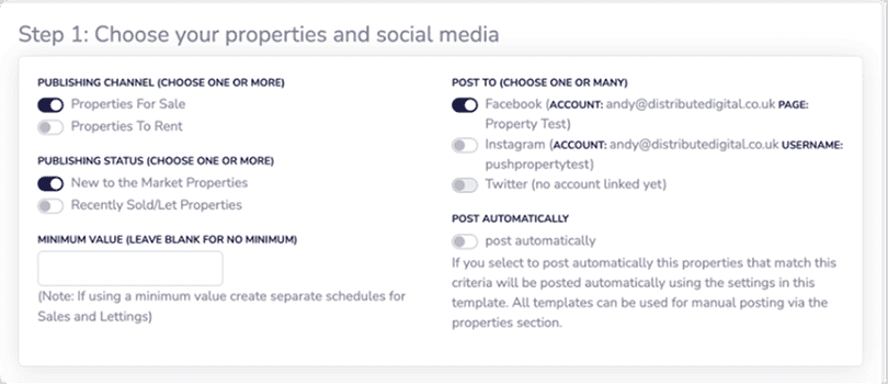 The final step is to set-up your templates. Each template you create lets you customise how it looks, choose what properties the post is for and decide when it gets posted. You can create as many templates as you like.