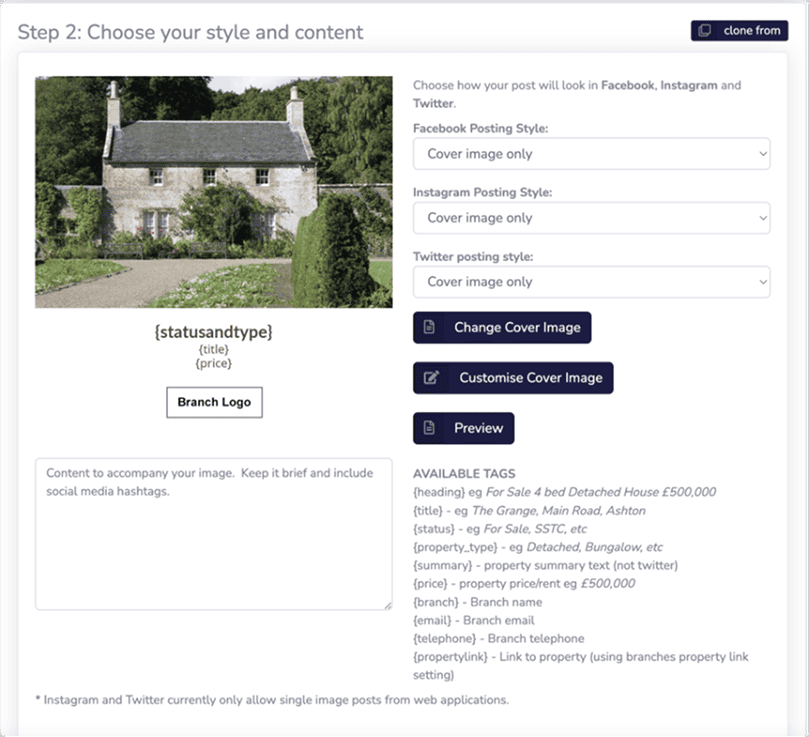 Step 2 allows you to choose how you want a post to look and the written content that you would like to appear on the post.